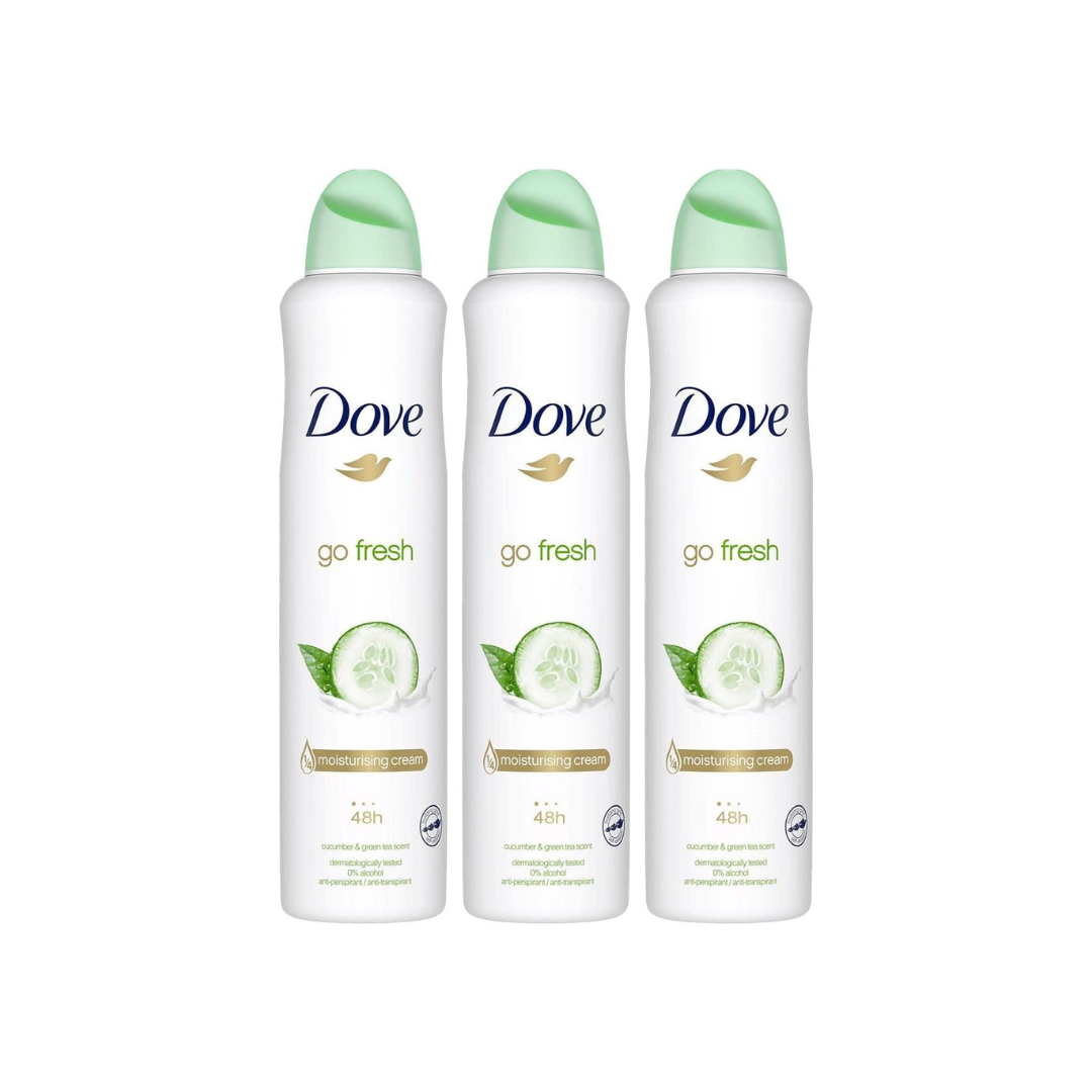 Dove Go Fresh Cucumber, Anti Perspirant Deodorant Aerosol Spray For Women, Long Lasting Anti Sweat And Body Odour Protection For A Clean And Fresh Fragrance 250 ml (Pack of 3)