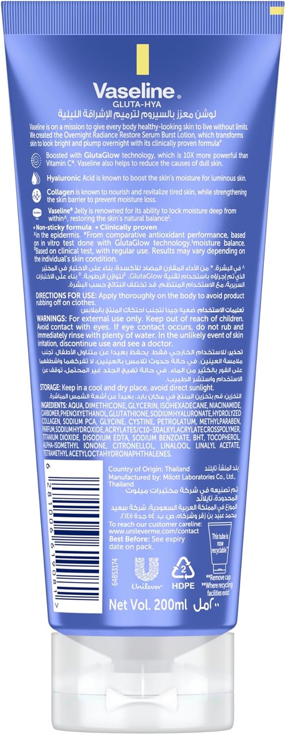 Vaseline Gluta-Hya Serum Burst Lotion Hyaluronic Acid and Collagen, 10x